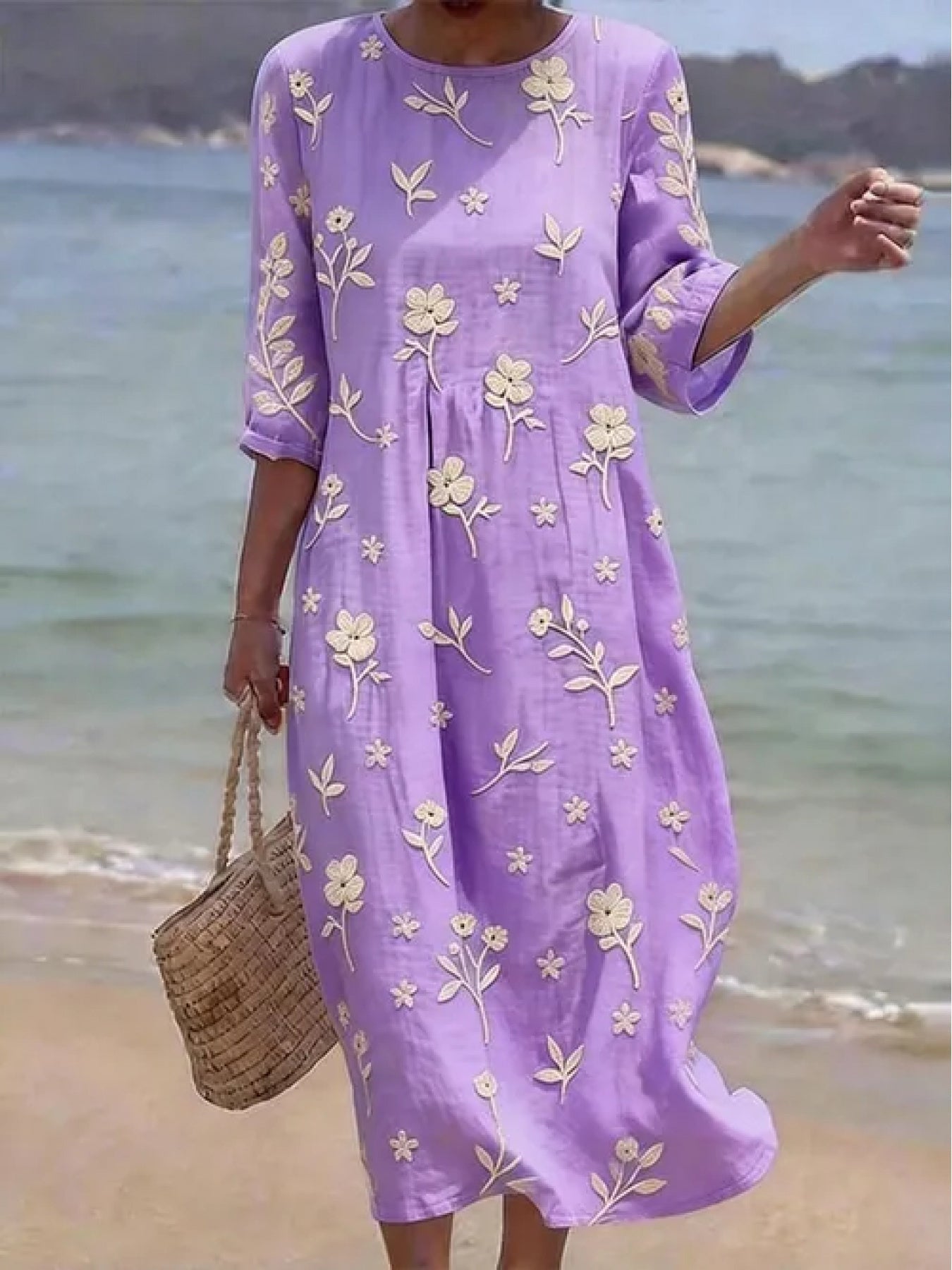 Ella | Embroidered Mid-Sleeve Dress
