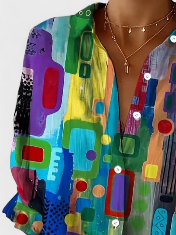 Elevate your style with the Soraya™ | Elegant Geometric Pattern Blouse, where modern design meets timeless elegance for every occasion.